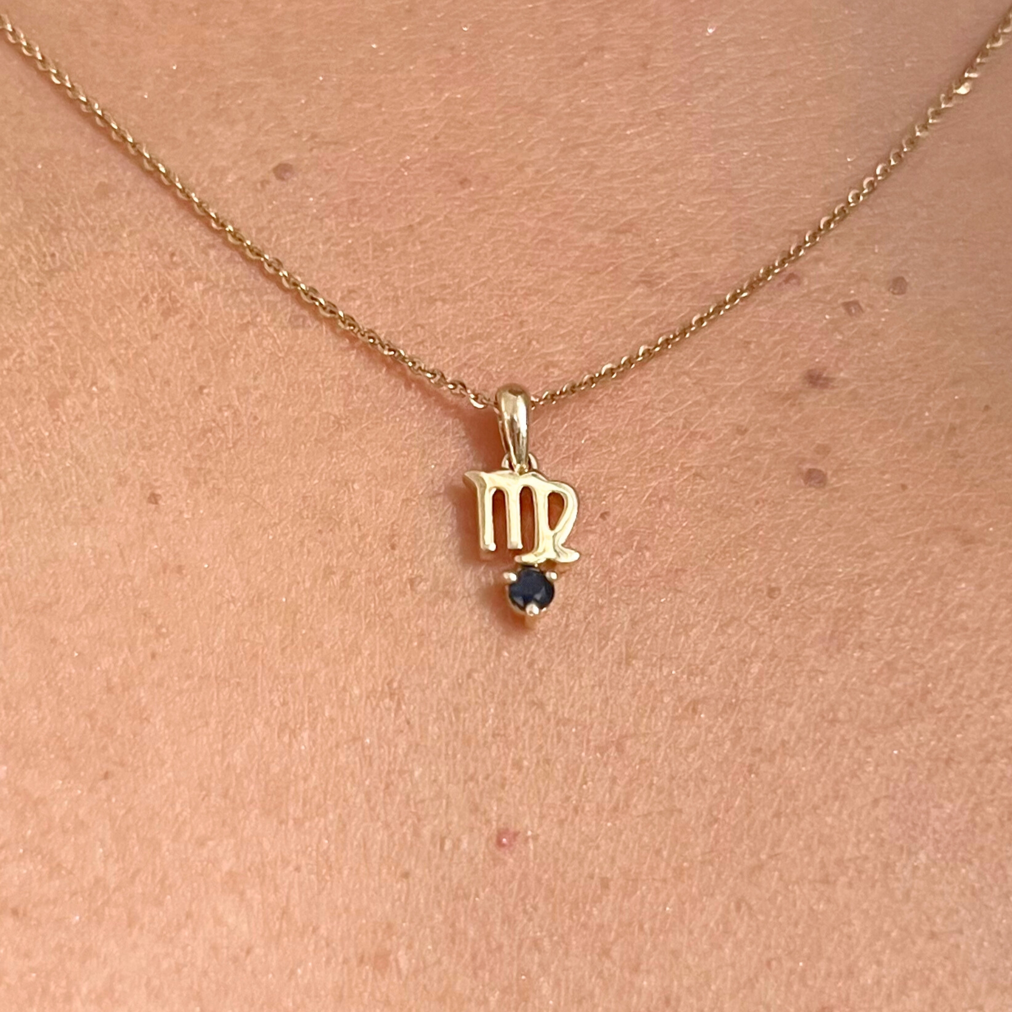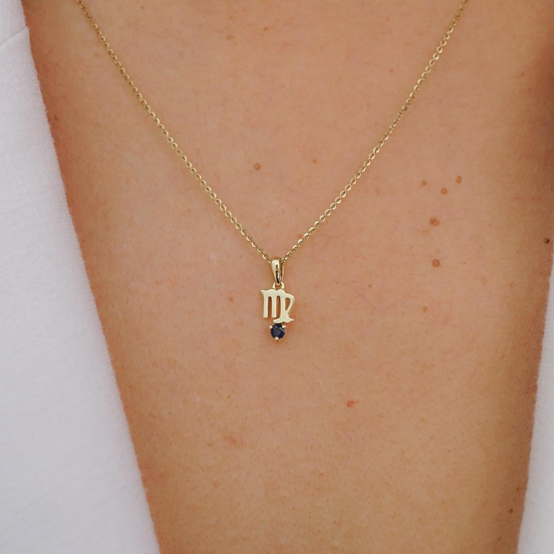 10K Gold Virgo with Blue Sapphire Pendant Necklace: Au 417 September Birthstone Charm