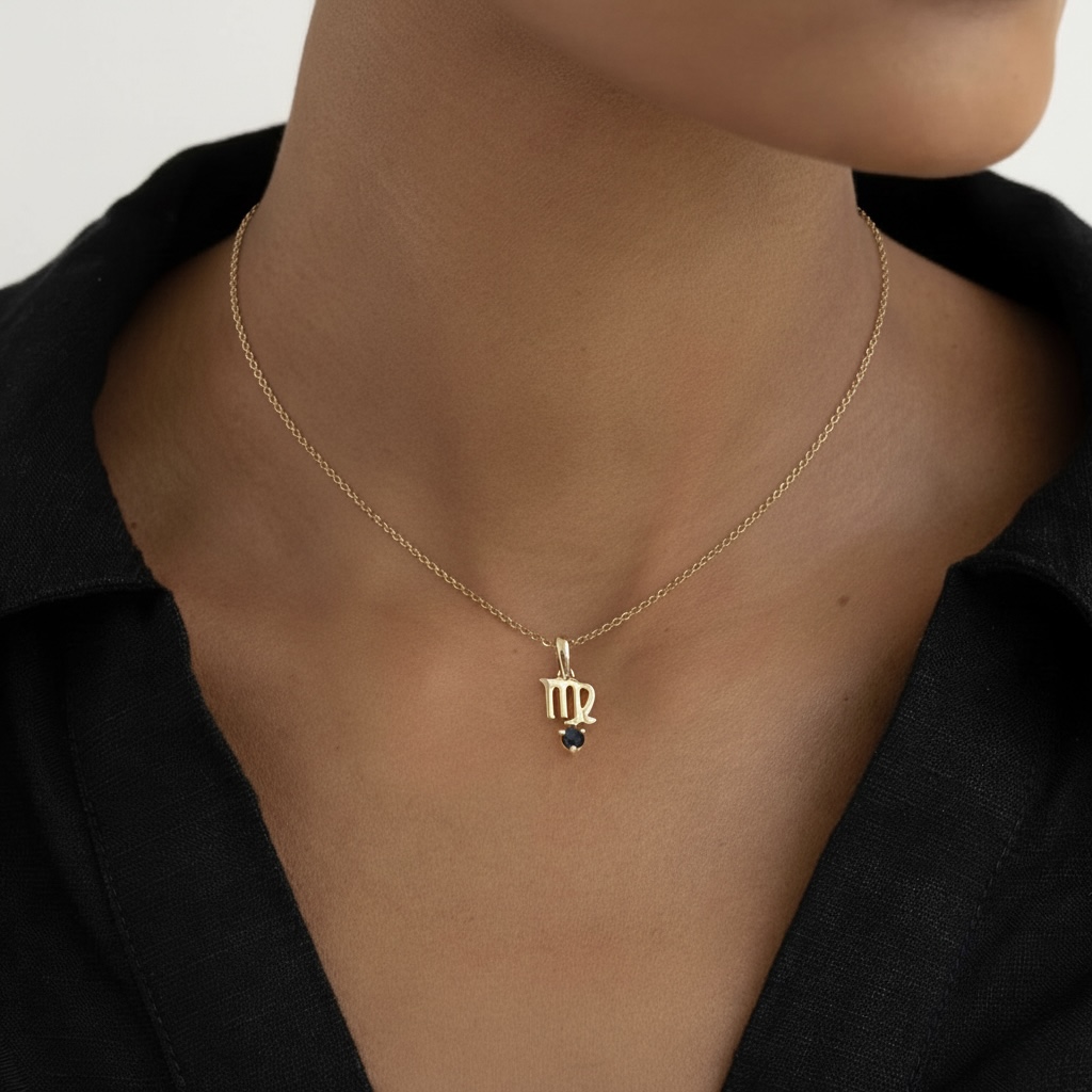 Celebrate wisdom, grace, and intuition with this 10K solid gold Virgo pendant necklace. Crafted in Au 417 real gold, the pendant features the Virgo Maiden design, symbolizing purity, intelligence, and care. A genuine natural blue sapphire, September’s birthstone, enhances the charm with its deep celestial glow — representing truth, loyalty, and wisdom. Perfect for Virgo birthdays (August 23 – September 22) or anyone who embodies Virgo’s thoughtful and graceful energy.