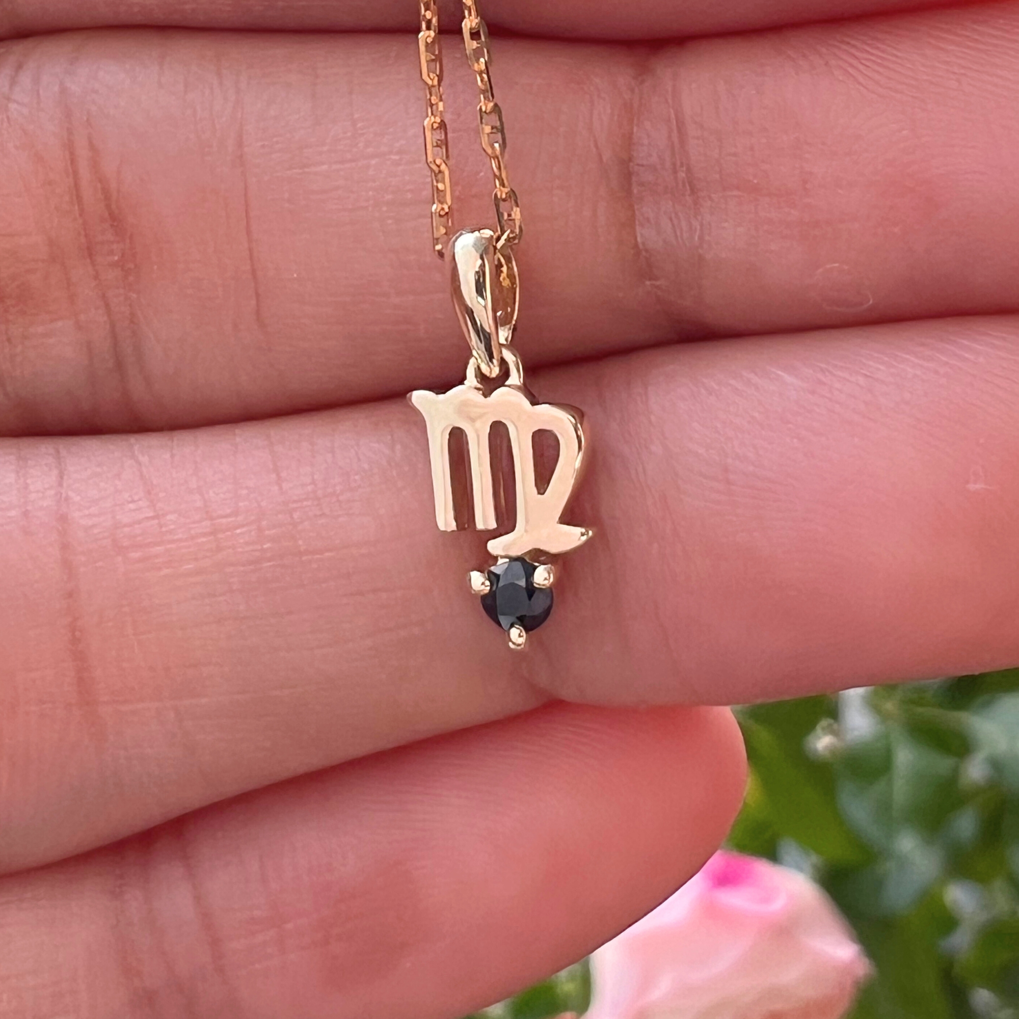 Be the first to review “10K Gold Virgo with Blue Sapphire Pendant Necklace: Au 417 September Birthstone Charm”