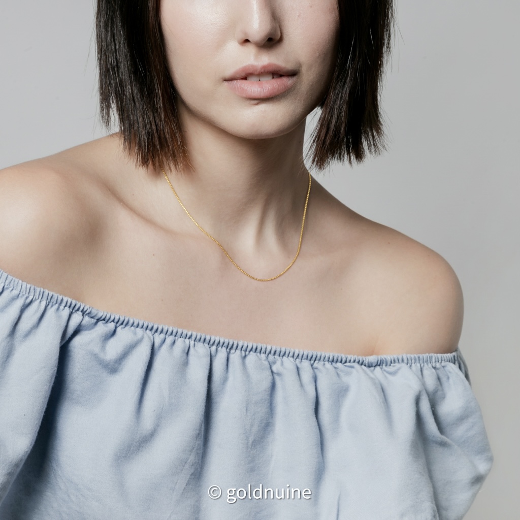 Sleek and refined, this 18K solid gold twisted box chain necklace is crafted in Au 750 real gold for timeless elegance. The unique twisted box design adds subtle sparkle while maintaining durability, making it a perfect minimalist chain for everyday wear. Available in both yellow gold and white gold, this dainty necklace is versatile enough to wear solo or pair with your favorite pendant.