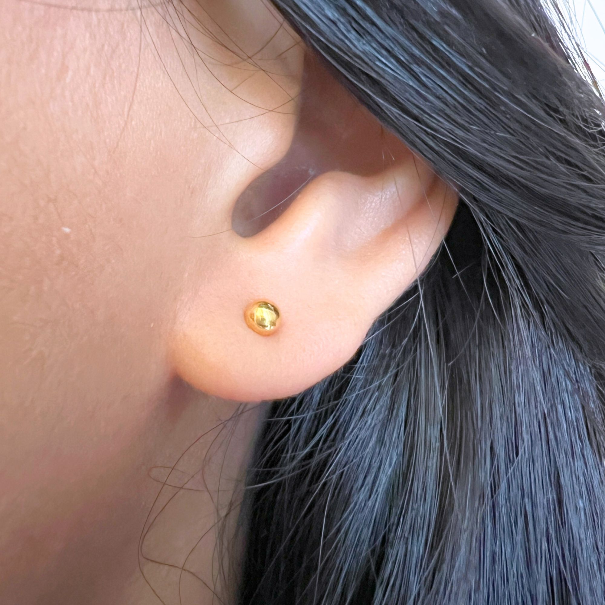 & Free ShippingSimple, timeless, and elegant — these 20K solid gold ball stud earrings are the perfect everyday jewelry essential. Handcrafted with care, each stud features a 3mm polished gold ball, offering a dainty yet luxurious touch of shine. Made in high-purity 20K yellow gold, these studs are comfortable for daily wear and versatile enough to complement any look.