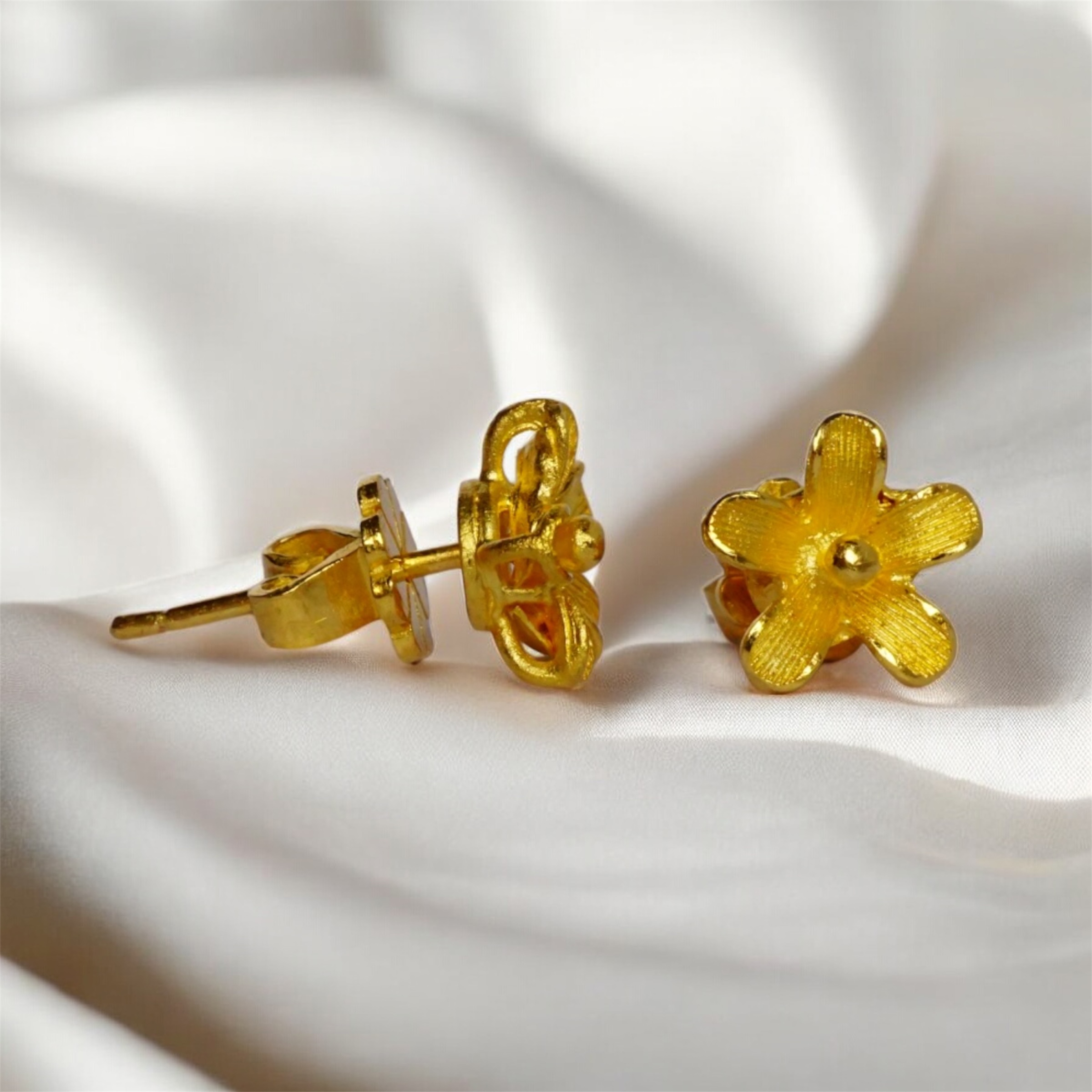 22K Solid Gold Forget-Me-Not Earrings: Handmade Yellow Gold Floral Studs