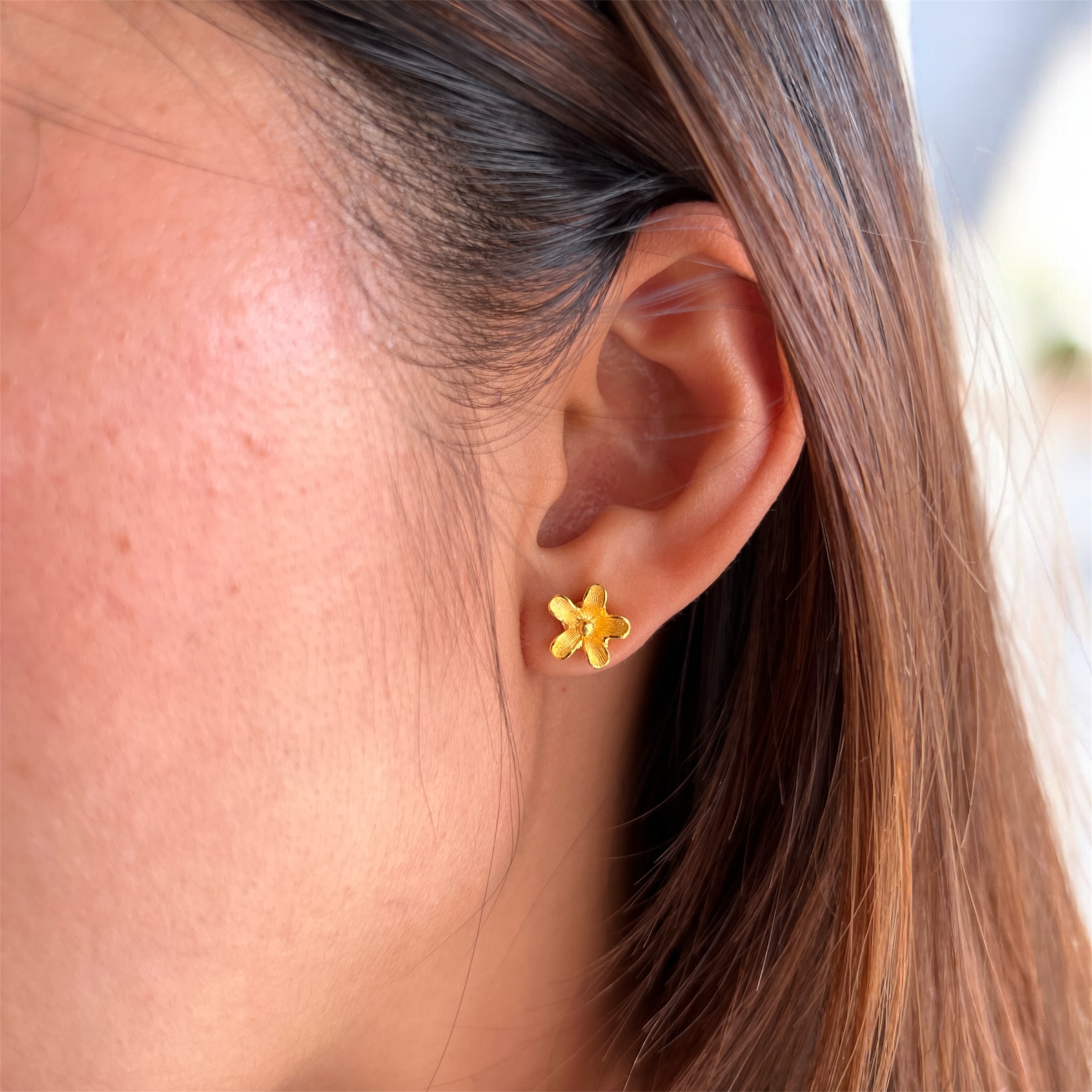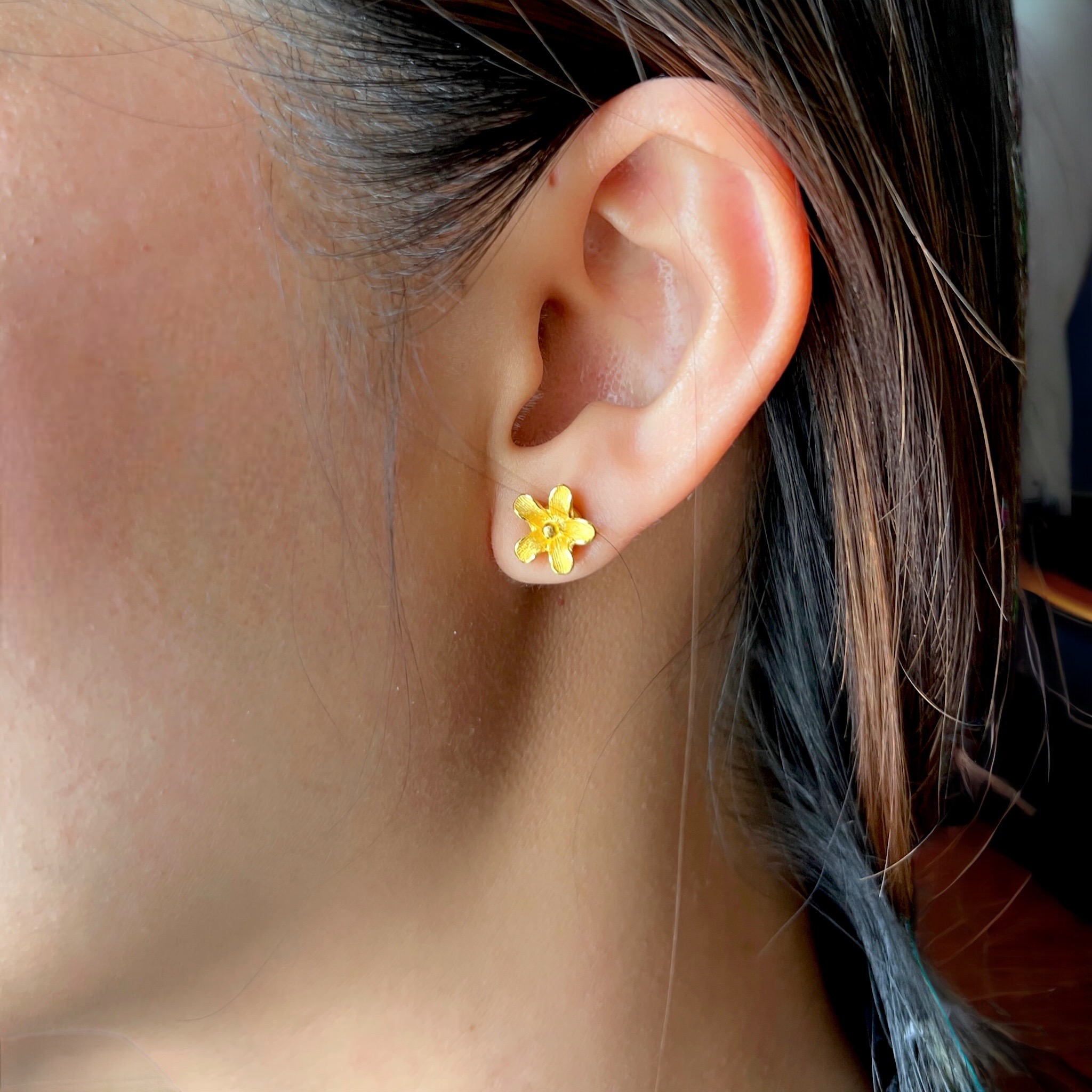 & Free ShippingDelicate and symbolic, these 22K solid gold forget-me-not stud earrings are lovingly handcrafted in 96.5% yellow gold for rich color and heirloom quality. Inspired by the graceful forget-me-not flower, these dainty studs symbolize love, remembrance, and timeless beauty. Their minimalist floral design makes them perfect for daily wear or as a thoughtful gift for someone special.