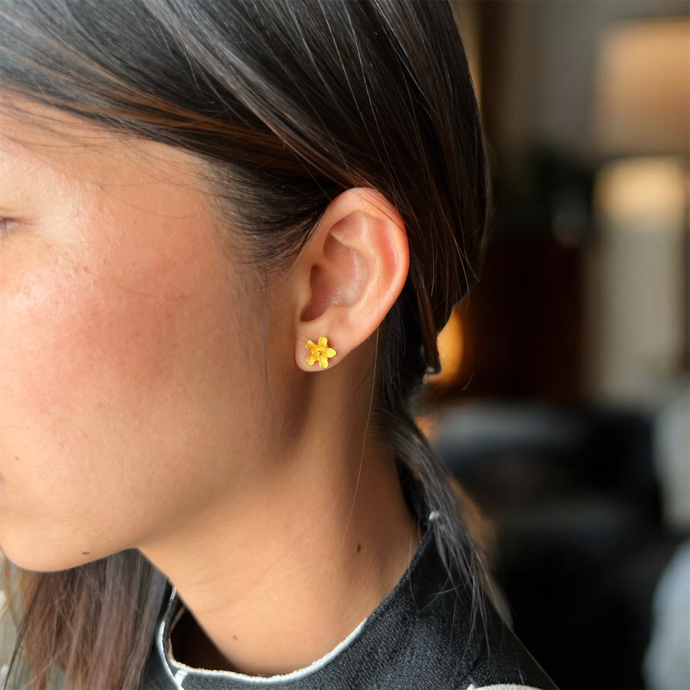 • Style: Dainty, minimalist floral stud earrings
