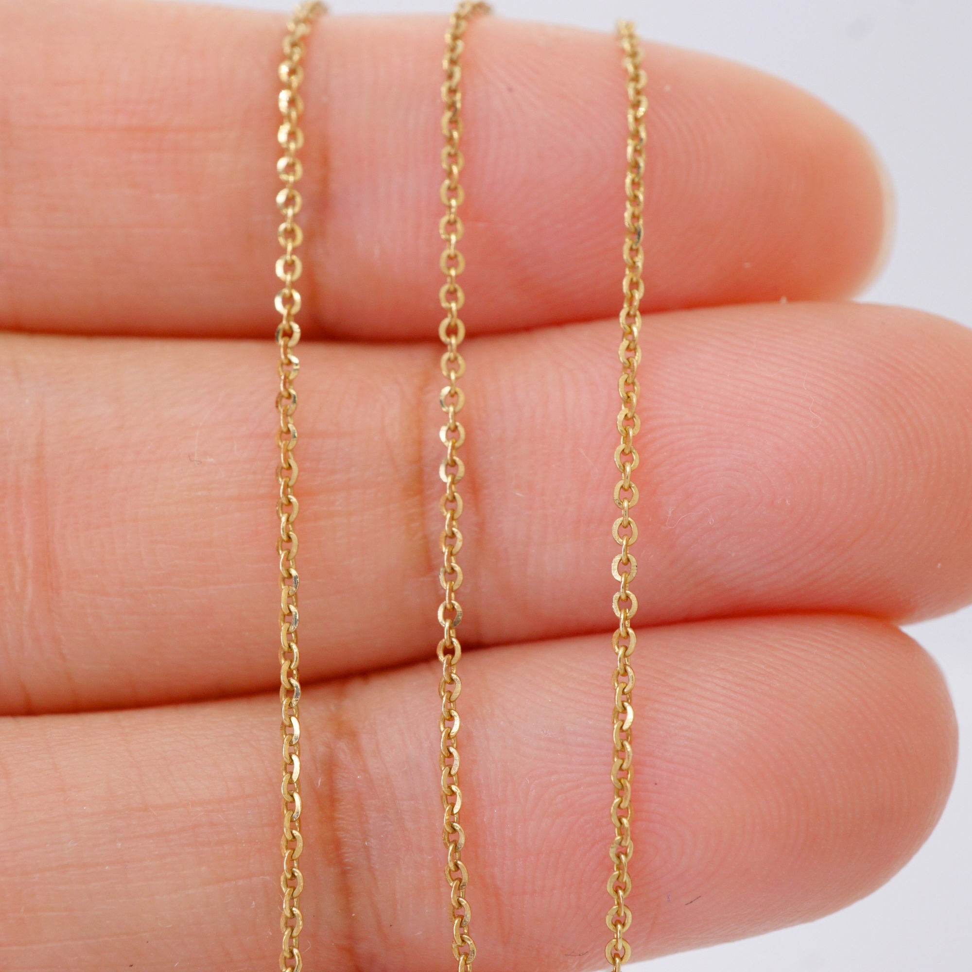 9K Solid Gold Rolo Chain Necklace: Dainty Gold Necklace (1mm, 18-20 inches)